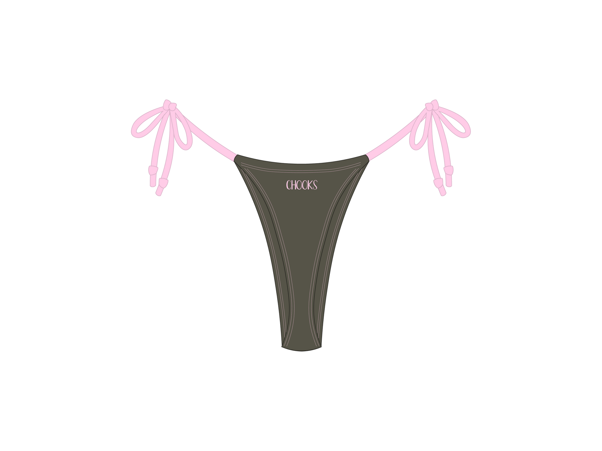 This is our Beachy bottom with a little more flair. with a little lace around the top and a cute bow this will be your new favorite suit! Pair this with the Bow top