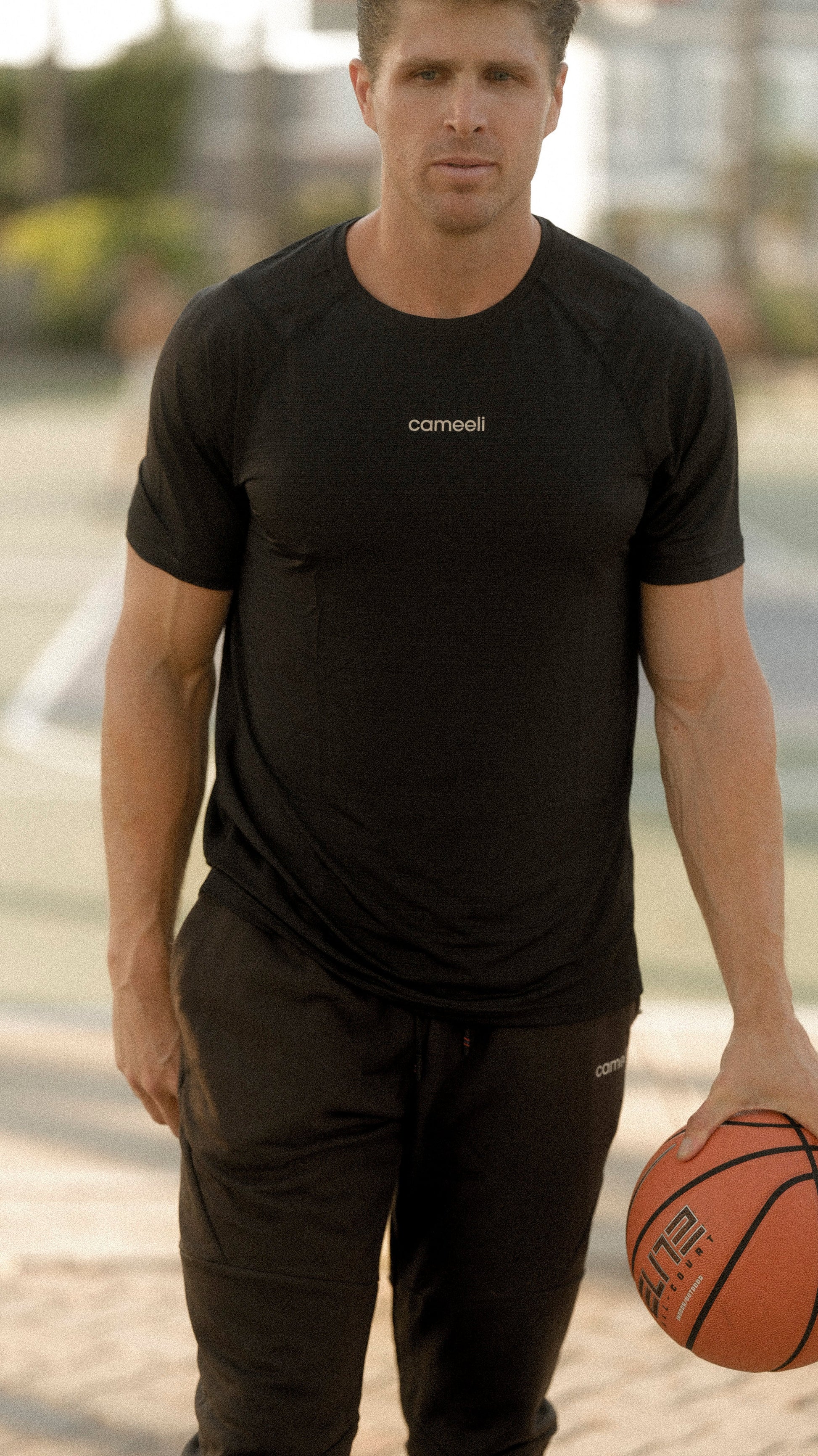Cameeli Men's Flex Tee - built for the everyday workout & fit lifestyle. Made with easy dry & four way stretch fabric to provide all day versatility and comfort.