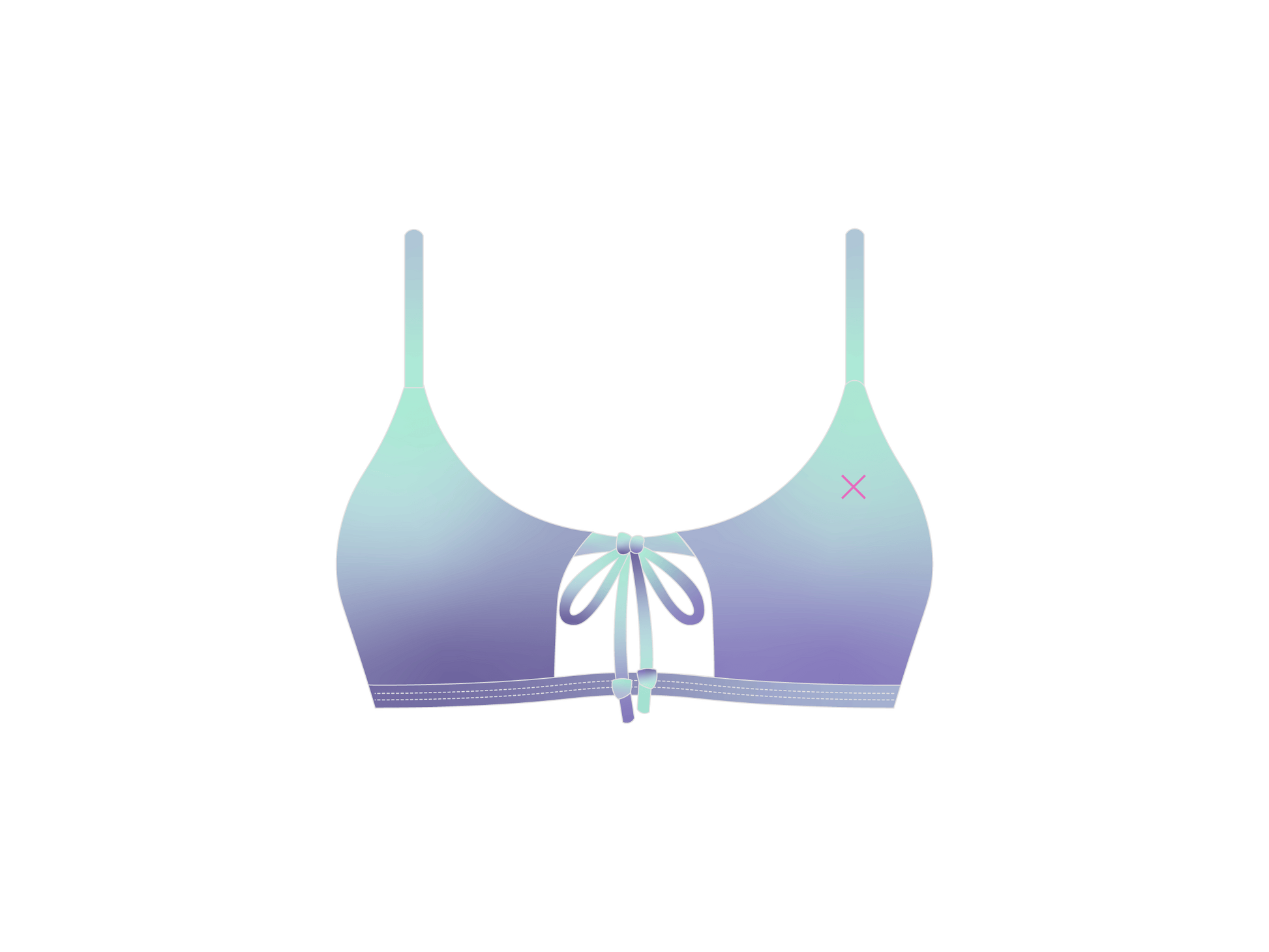 This open front style top boasts a fun. vibrant solid embroidered logo that is sure to turn heads. With a tie in the front that adjusts the straps. and an Ombre design fading from white to pink. This top is the perfect blend of style and function. complete it with the matching Dainty Bottoms.