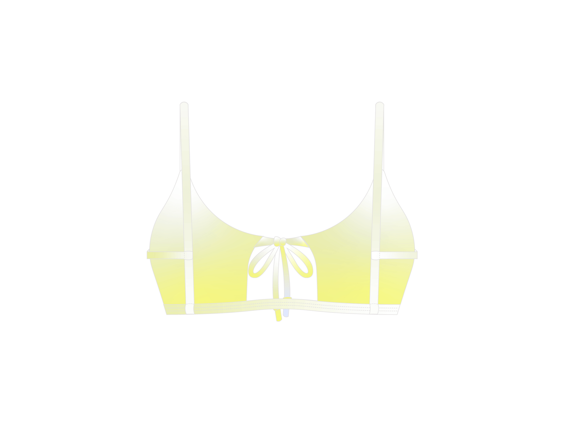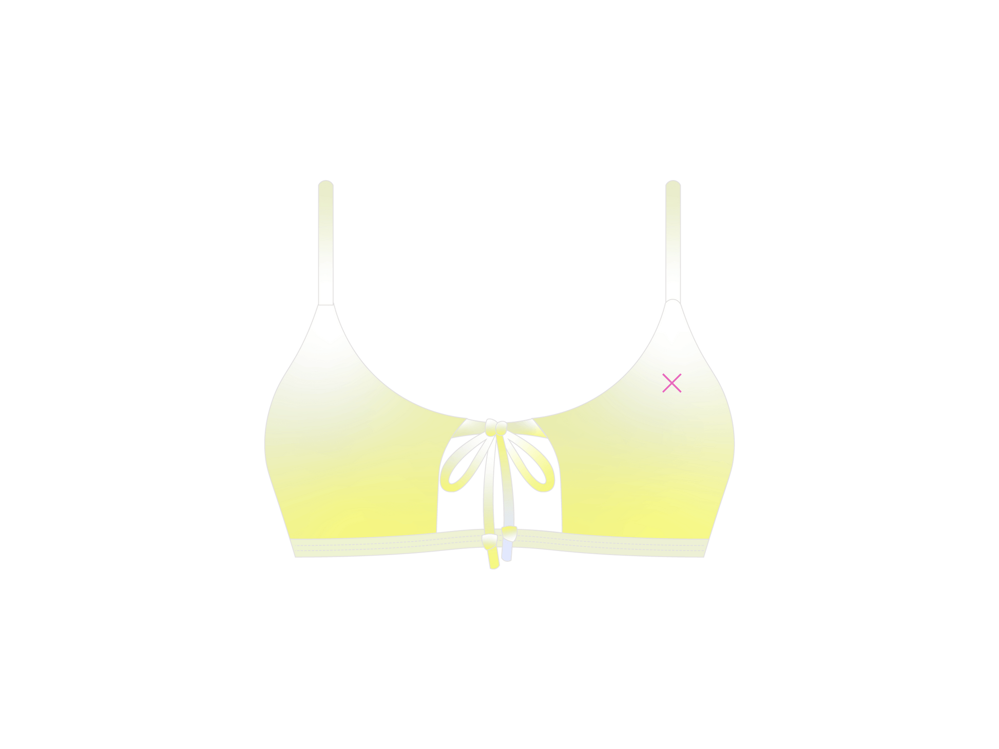 This open front style top boasts a fun. vibrant solid embroidered logo that is sure to turn heads. With a tie in the front that adjusts the straps. and an Ombre design fading from white to pink. This top is the perfect blend of style and function. complete it with the matching Dainty Bottoms.