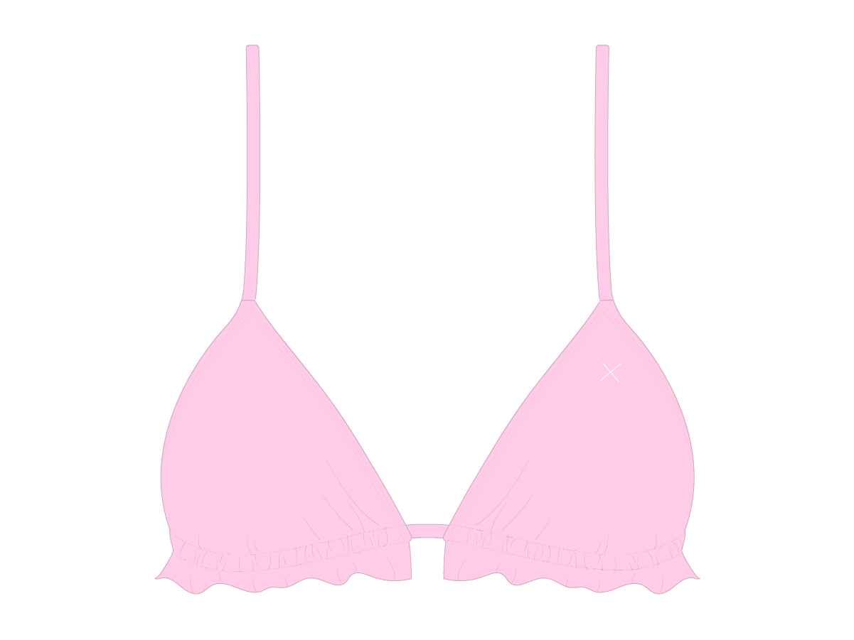 This classic triangle top boasts a fun. vibrant solid print. and cute accessorizing ruffles along the strap lines to add some sophistication to your poolside / beach look.