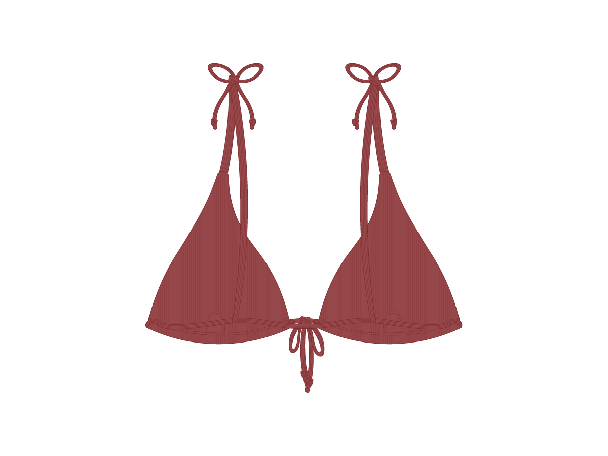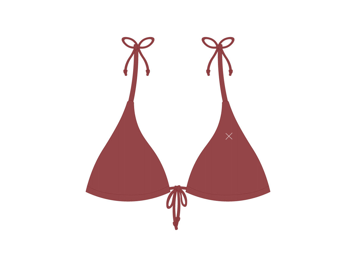 This is a classic sliding triangle top but with an extra tie in the front for added style. in our soft ribbed fabric.
