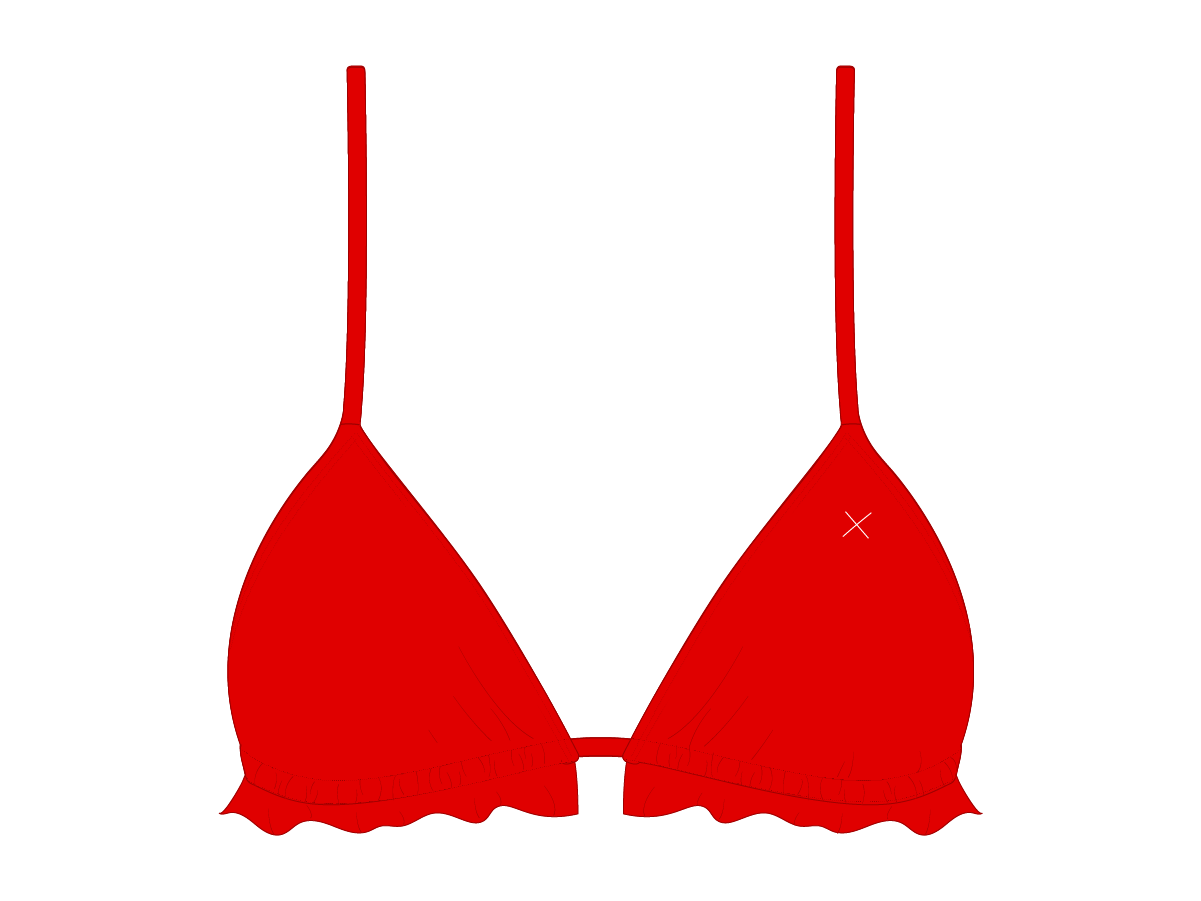 This classic triangle top boasts a fun. vibrant solid print. and cute accessorizing ruffles along the strap lines to add some sophistication to your poolside / beach look.