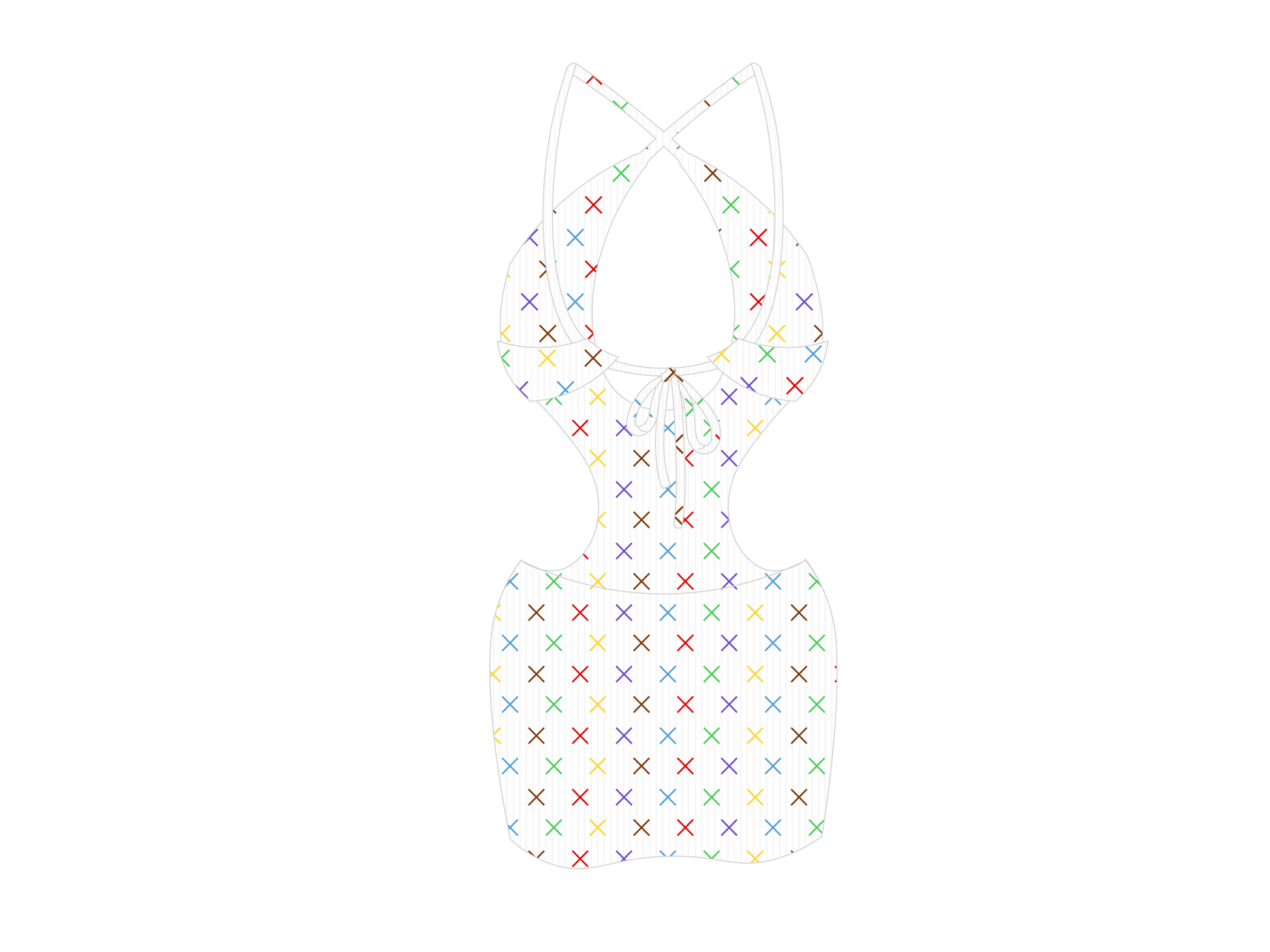 This all new Ribbed Logo Print Dress puts a fresh. sexy spin on the classic cut-out dress. with a string down cutout neckline closure. cheeky back. and adjustable traps. the beach is yours.